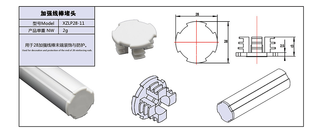 用于28加強線棒末端裝飾與防護