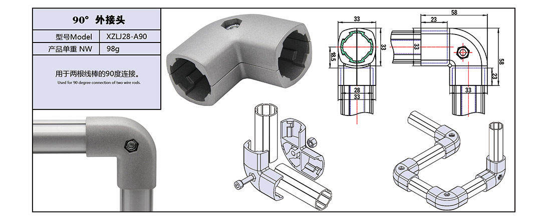 定制:鋁管接頭 90°外接頭 XZLJ28-A90