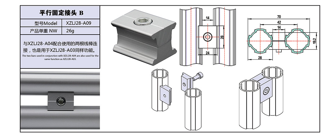 鋁管接頭 雙管外直接頭 XZLJ28-A06