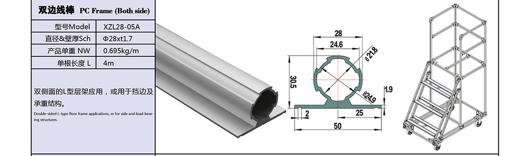 雙層側面的L型層架應用,或用于擋邊及承重結構。